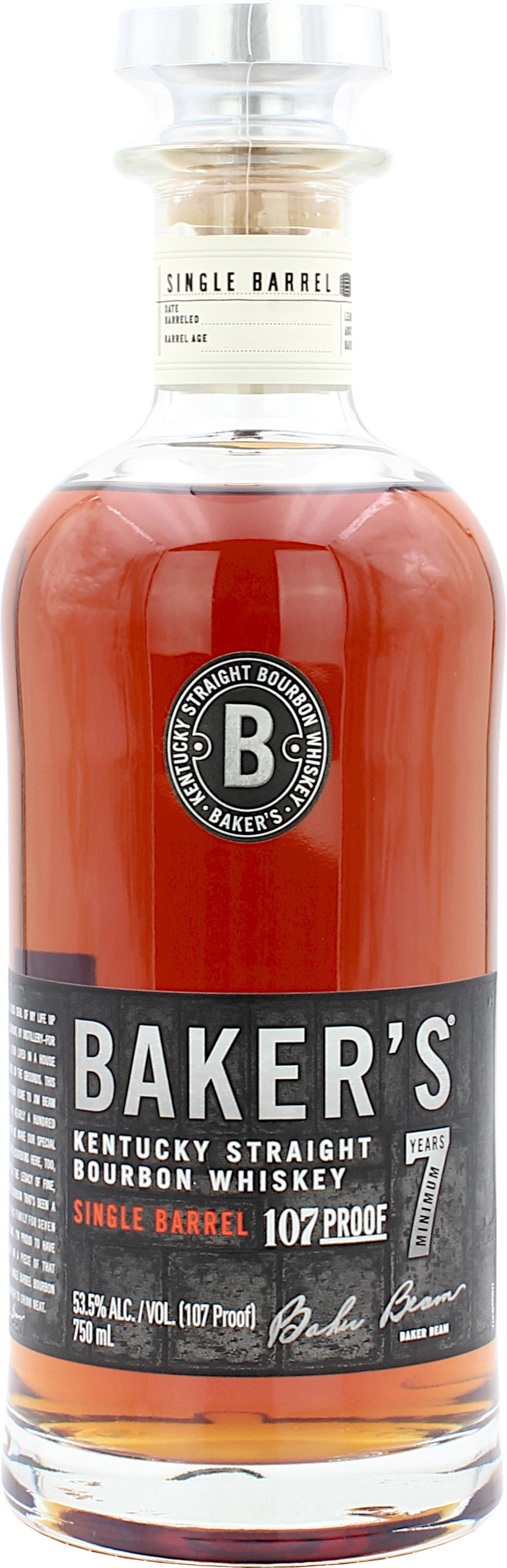 Der Bakers Single Barrel 107 Proof 7 Jahre gehört zu Jim Beam´s Small Batch Bourbons. Nagelneue Eichenfässer wurden für die 7 Jahre Reifung verwendet. Der Name Baker stammt vom Großneffen Jim Beam´s. Die zur Gärung verwendete Hefe ist seit 60 Jahren in Benutzung. Sie ist der Grund für den samtweichen, außerordentlich guten Geschmack. Der Bakers Single Barrel 107 Proof 7 Jahre wird als Einzelfass Abfüllung vertrieben. Das aktuelle Fass stammt vom November 2013 und lagerte 7 Jahre und 1 Monat.