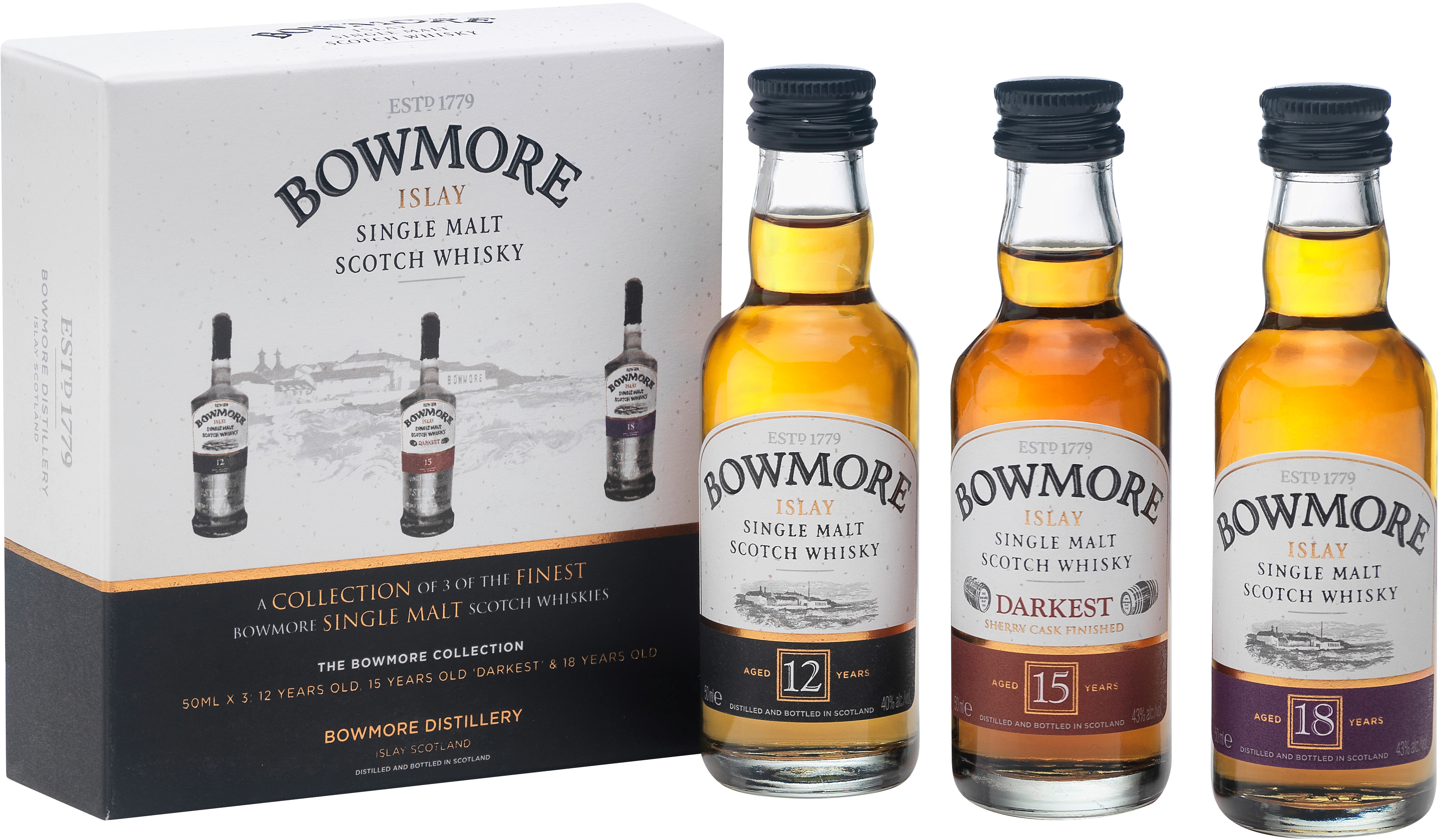 Die Bowmore Distillers Collection enthält 3 Abfüllungen einer der bekanntesten Whisky-Distillen. Ideal zum Probieren oder auch zum Verschenken.