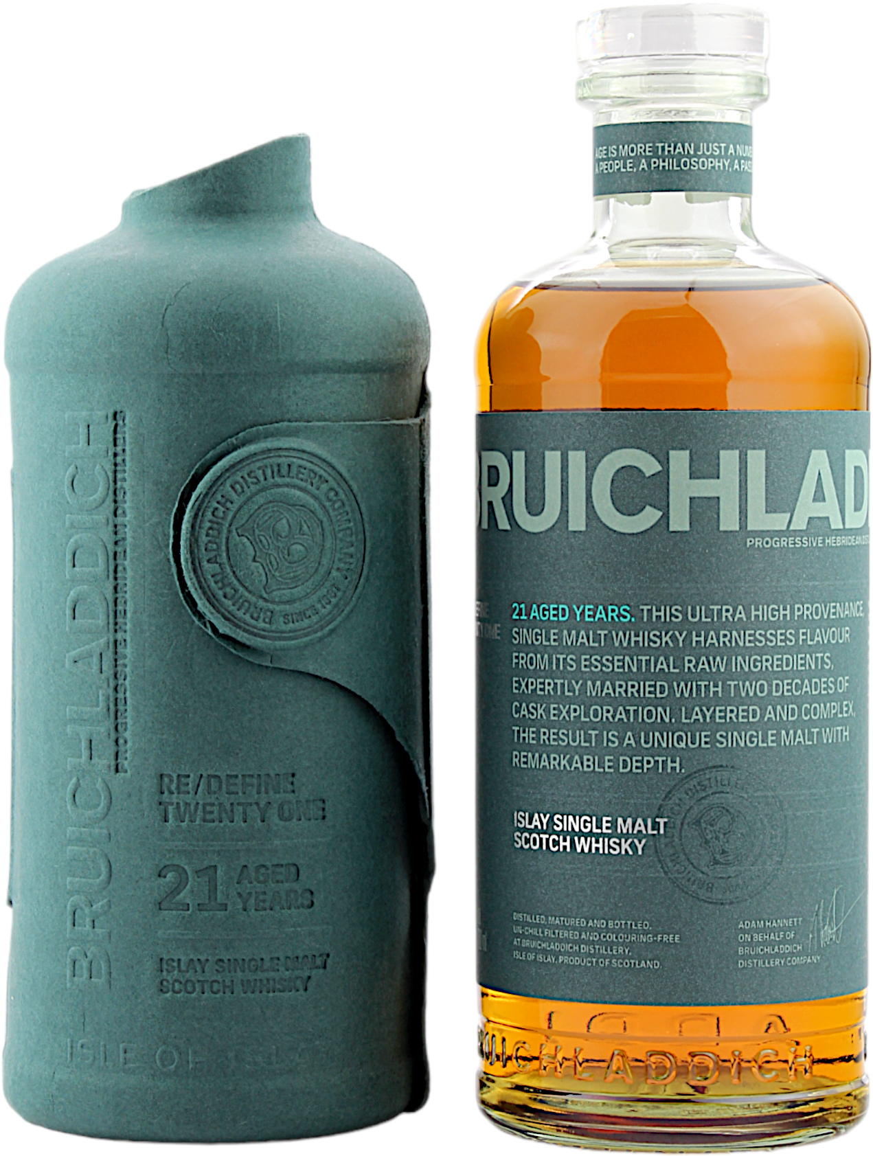 Der Bruichladdich 21 Jahre stellt die erste Veröffentlichung von Bruichladdich im Reisehandel dar, welche eine Altersangabe aufweist. Wie alle anderen Bruichladdich-Whiskys wird auch der Bruichladdich Twenty One ausschließlich auf Islay destilliert, gelagert und abgefüllt. Der Islay Single Malt Scotch Whisky wird komplett aus schottischer Gerste gebrannt. Die Mischung besteht zu 80 % aus Bourbon-Fässern und zu 20 % aus Sherry-Fässern. Sein Bukett umfasst getrocknete Früchte mit einem Hauch Erde in der Nase. Im Geschmack begeistern Noten von Schokolade, Mandeln, süße Vanille und Nuancen von Ginsterblüte. Abgefüllt wird der Bruichladdich 21 Jahre mit 50.0% vol. Auf Färbung und Kühlfiltrierung wurde verzichtet.