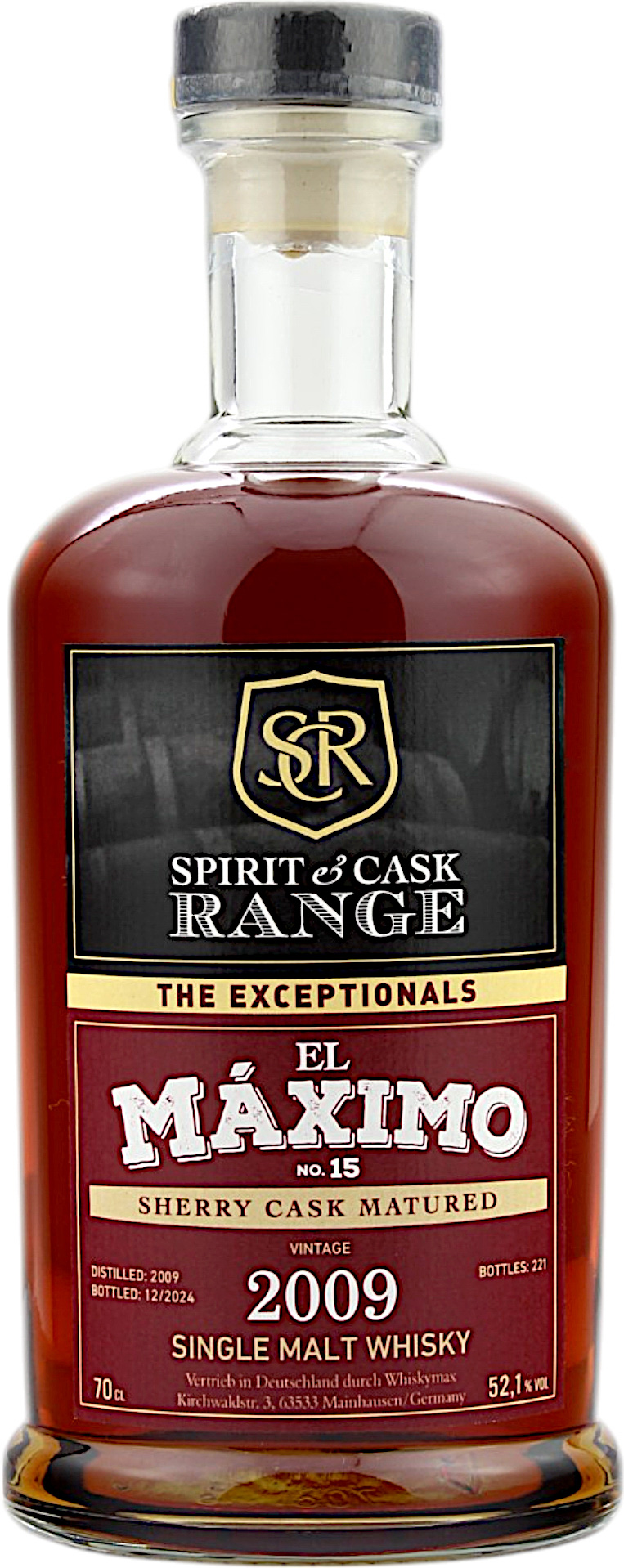 El Máximo No.15 aus der Serie Spirit & Cask Range reifte ca. 14 Jahre von 2009 bis Dezember 2024 in einem ehemaligen Sherryfass zur Perfektion. Er ist limitiert auf 221 Flaschen. El Maximo kommt aus dem spanischen und bedeutet "Der Maximale" oder umgangssprachlich "Der Größte". Eine spannende Abfüllung und ein unverzichtbarer Tropfen für alle, die Sherry lieben. Der Whisky reift in einem Sherry-Cask. Dadurch tritt ein besonders intensiver Geschmack hervor. Abgefüllt mit Fassstärke und starken 52.1% vol.