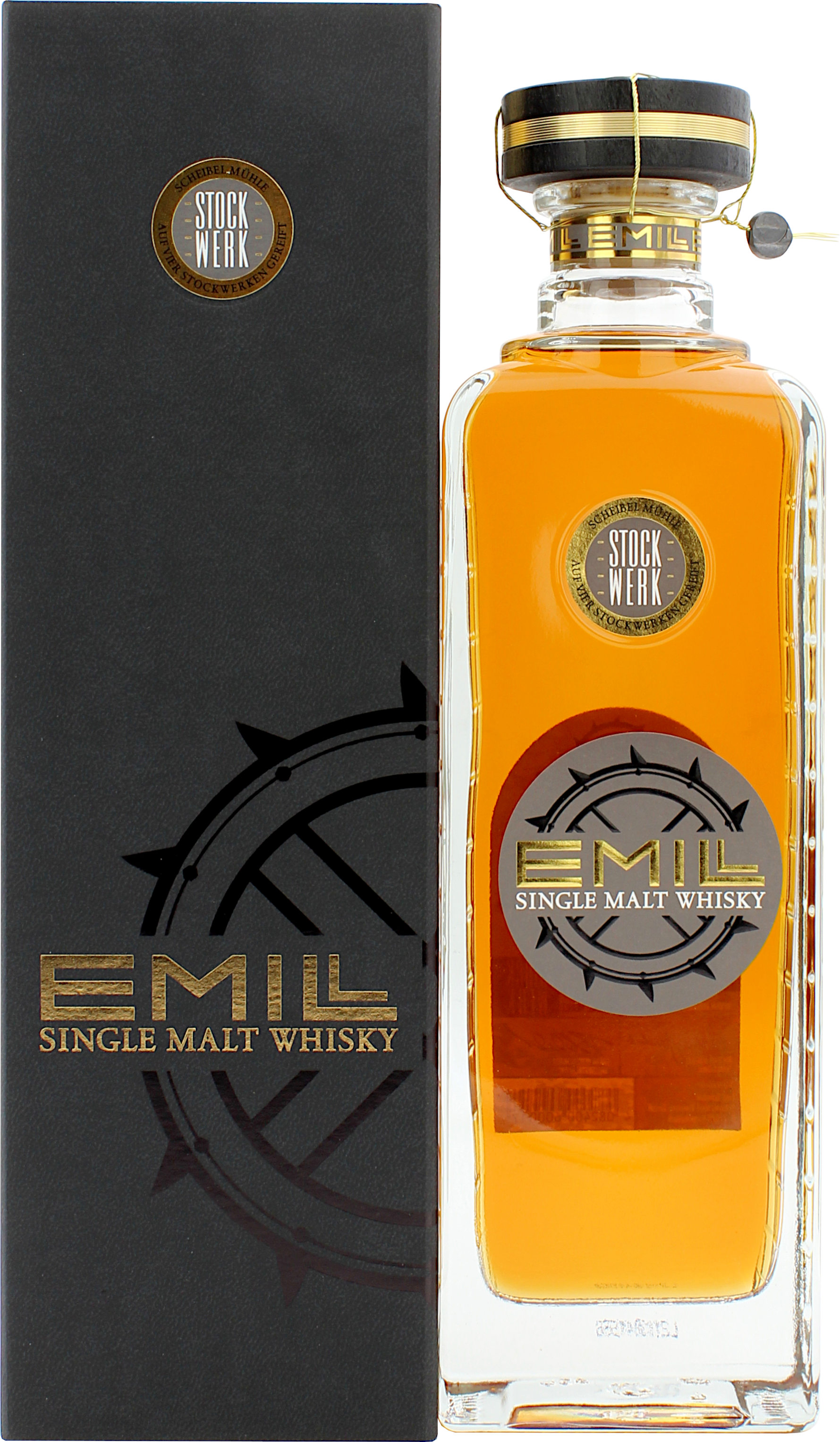 So wie der Feinwerk und der Kraftwerk Single Malt stammt auch der Emill Stockwerk Single Malt aus der traditionsreichen Scheibel Brennerei im Schwarzwald. In handgehämmerten Kupferbrennblasen, mit dem typischem Schwanenhals, wird der Whisky 2-fach gebrannt und anschließend auf 4 Stockwerken in der historischen Scheibel-Mühle in Kappelrodeck fassgereift. Stets begleitet von der Wasserstraße (Bergbach „Acher“). So entstand ein Single Malt mit Aromen von feinem Karamell, Honig und Röstaromen von Holzrauch. Im Geschmack überzeugt der Emill Stockwerk Single Malt mit cremigen Honignoten, die von feinen Röstnoten und Malz begleitet werden. Abgefüllt wird der Emill Stockwerk Single Malt mit 46.0% vol. Auf Färbung und Kühlfiltrierung wurde verzichtet.