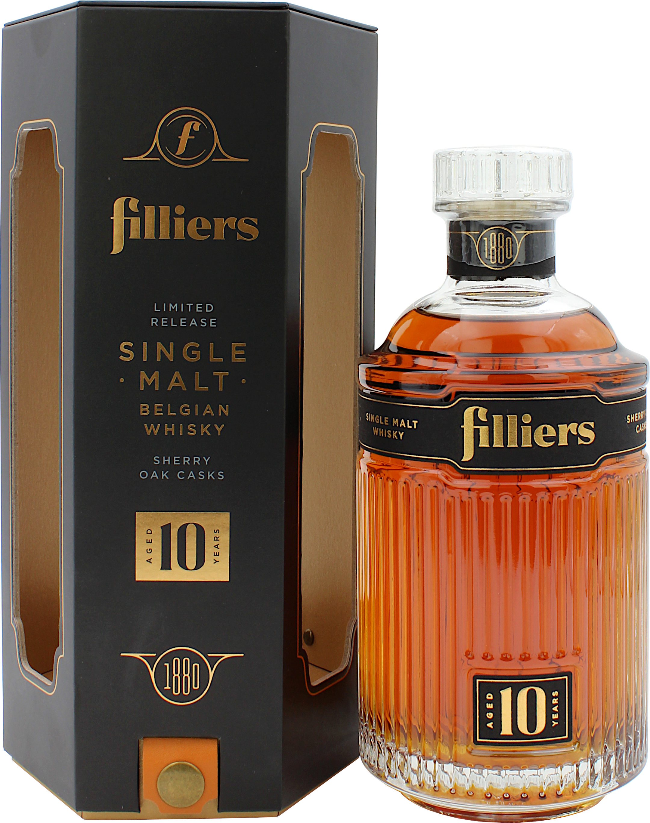 Der Filliers 10 Jahre Sherry Cask Limited Edition stammt aus der belgischen Destillerie von Filliers, welche eigentlich seit 1880 für die Herstellung von Gin bekannt ist. Nun wird mit einer 10-jährigen Single Malt Abfüllung Neuland betreten und die Abfüllung hat es in sich. Nicht nur die Verpackung ist der absolute Hingucker, auch die Lagerung ist für einen belgischen Whisky bis dato einmalig. 10 Jahre lang reifte die Abfüllung in ehemaligen Sherryfässern und bringt dadurch Aromen von Trockenfrüchten, viel Sherry und dunkler Schokolade. Im Geschmack zeigen sich Orangennoten, Walnüsse sowie Kaffee und Schokolade. Der Filliers 10 Jahre Sherry Cask Limited Edition ist streng limitiert. Abgefüllt wurde ungefärbt und ungefiltert mit 43.0% vol.