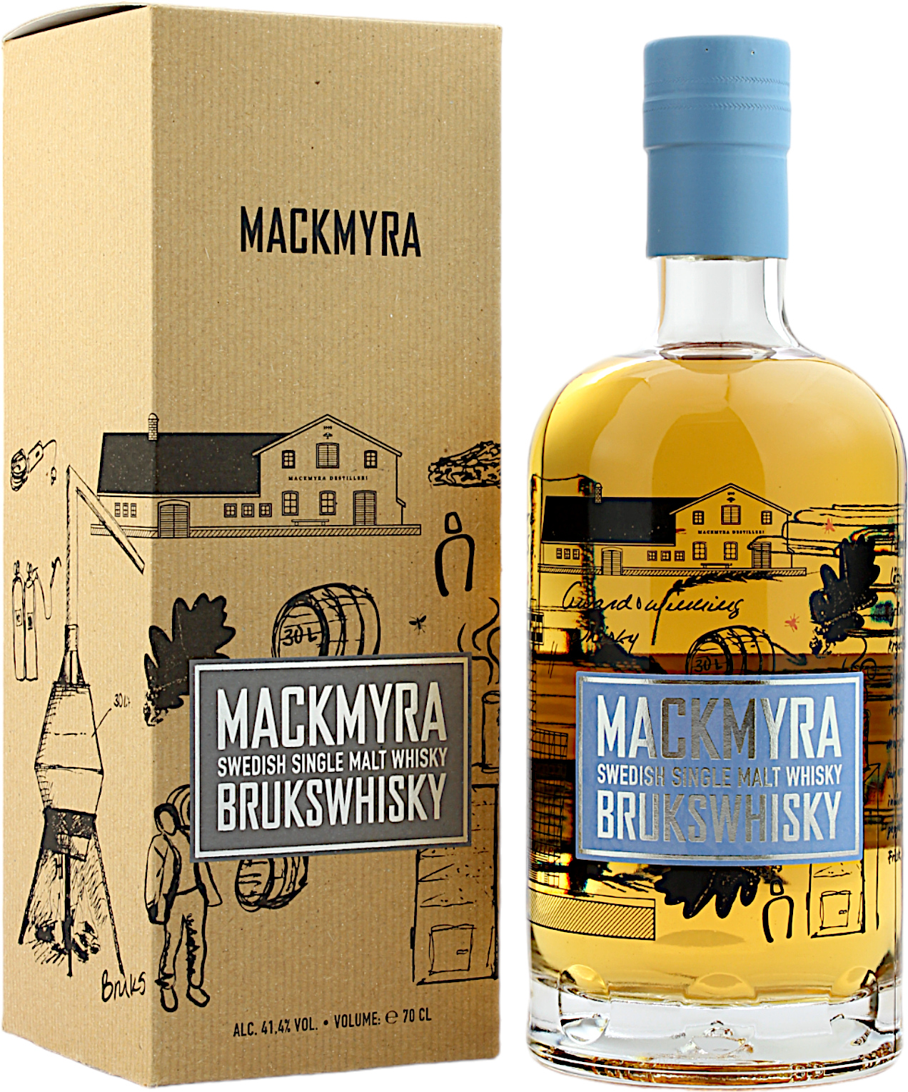 Die Gründung von Mackmyra erfolgte im Jahr 1999, wobei der Name auf den Standort ihrer Brennerei, Mackmyra Bruk im Gästrikland, zurückzuführen ist. Das verwendete Getreide wird von landwirtschaftlichen Betrieben in Mittelschweden bezogen und das Wasser stammt aus der nahegelegenen Quelle Valboåsen. Der Whisky reifte hauptsächlich in Bourbonfässern, es wurden aber auch schwedische Eichen- und Sherryfässer verwendet. Mackmyra Brukswhisky bietet ein ausgewogenes Geschmacksprofil aus Früchten und Butterscotch. Sein Aroma ist frisch und klar, ergänzt durch sanfte Gewürznoten des schwedischen Torfs sowie Wacholderbeeren. Die Geschmackskomponenten umfassen eine deutliche Fruchtigkeit zusammen mit Butterscotch, Zitrusfrüchten und Birnen; bemerkenswerte Elemente sind Lakritze und Minze. Der Geschmack am Gaumen ist sowohl fruchtig als auch leicht rauchig; im Nachklang bleibt eine fruchtige Note gepaart mit einer milden Würzigkeit erhalten.Abgefüllt wurde der Mackmyra Brukswhisky mit 41.4% vol.