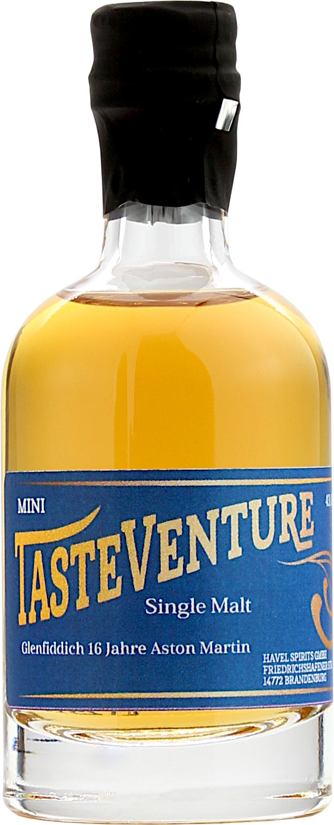 Eine Miniatur vom Glenfiddich 16 Jahre Aston Martin Formula One Team Limited Edition Tasteventure mit 43.0% in 50 ml.