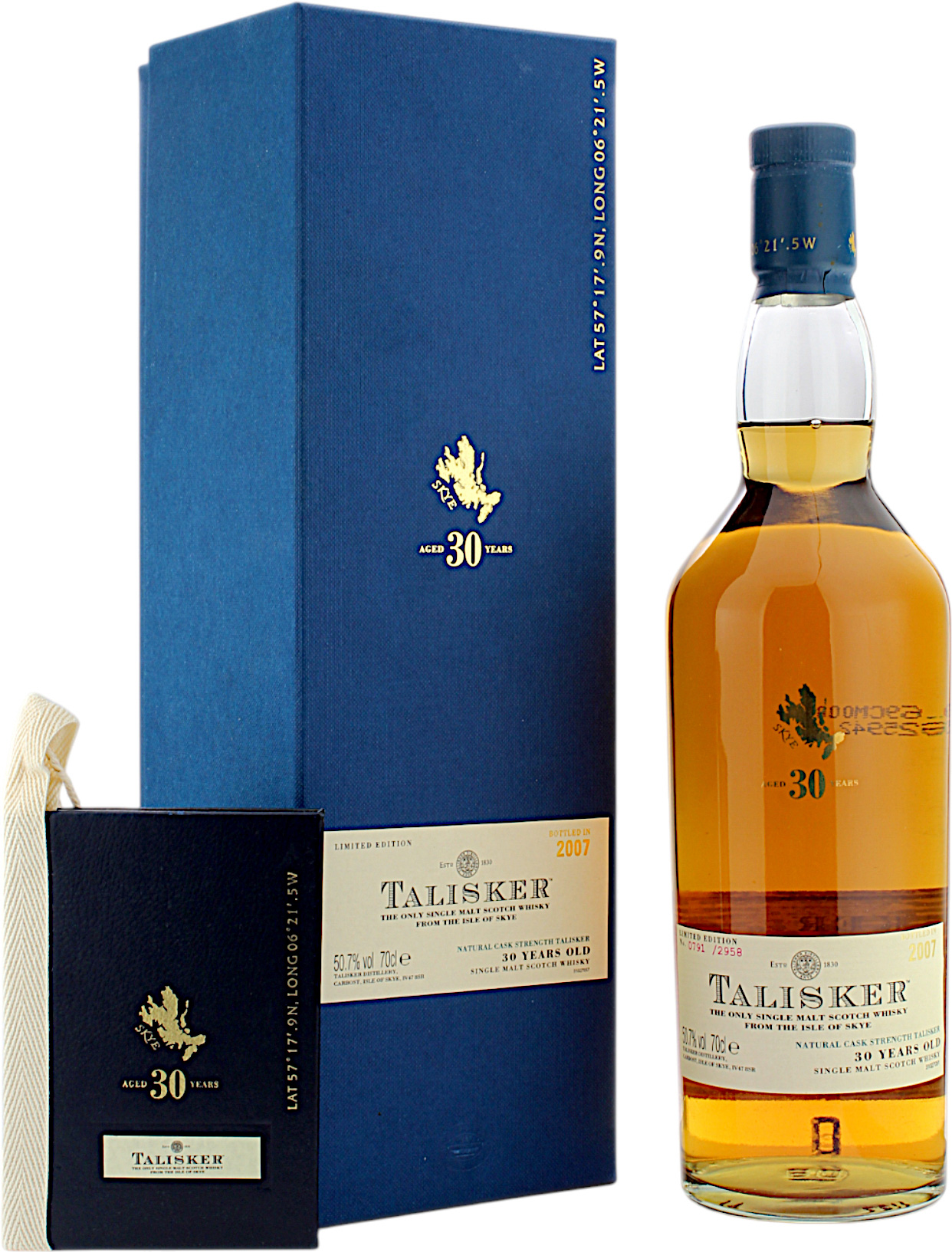 Der Talisker 30 Jahre von 2007 wurde im Rahmen der Special Release Reihe in Fassstärke mit 50.7% vol. abgefüllt. Auf Kühlfiltrierung und Färbung wurde dabei verzichtet. Die Lagerung erfolgte in einem Mix aus ehemaligen Ex-Bourbonfässern und ehemaligen Sherryfässern. Die Auflage ist auf 2.958 Flaschen weltweit limitiert.