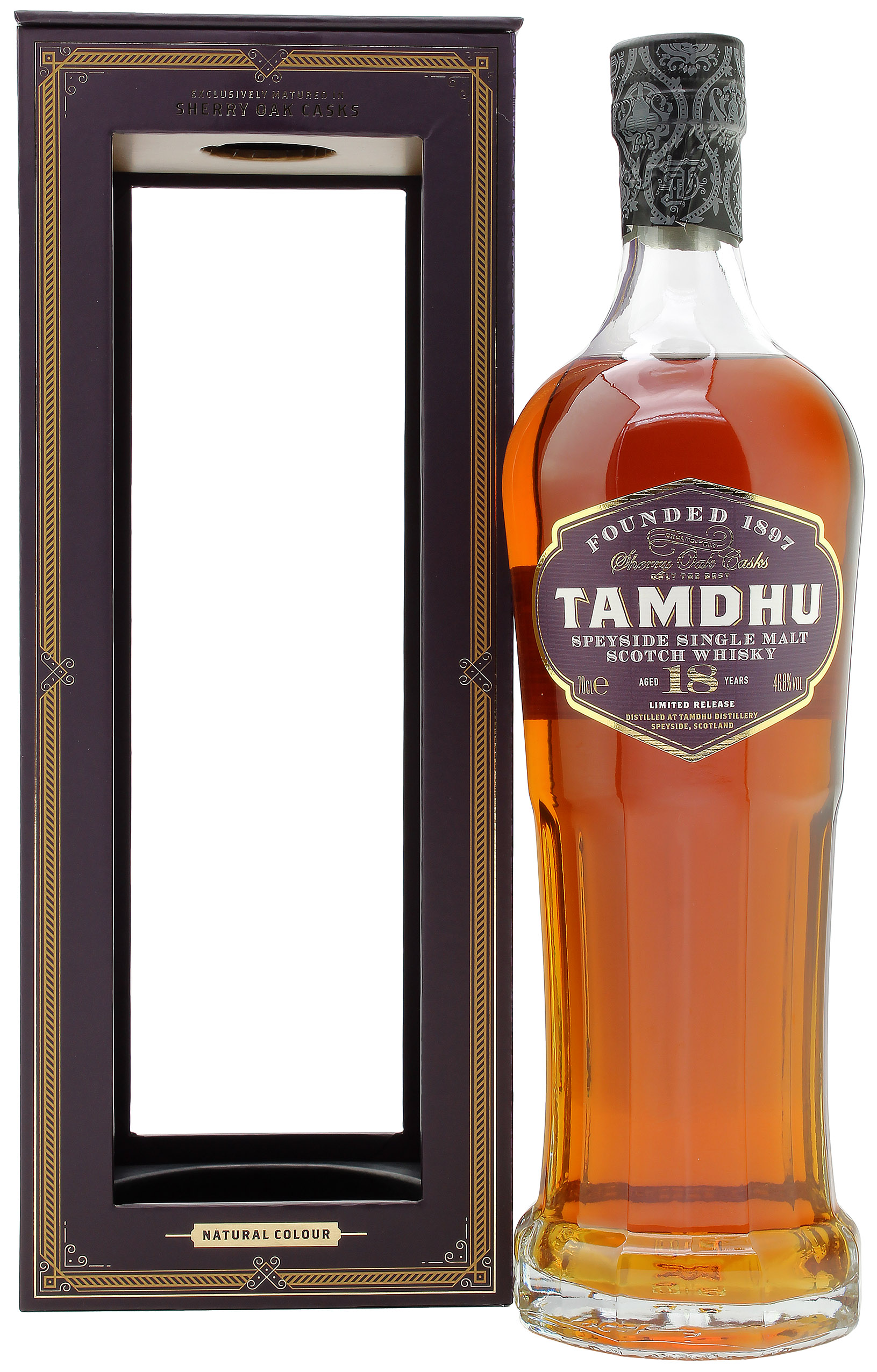 Der Tamdhu Sherry Cask 18 Jahre lagerte ausschließlich in ehemaligen Oloroso Sherryfässern und bringt daher feine Aromen von gebrannten Nüssen. Dazu getrocknete Früchte wie Rosinen und ein Hauch von Vollmilchschokolade. Im Geschmack dominieren die klassischen Sherrynoten sowie Noten von kandierten Äpfeln und Rohrzucker. Das ansprechende Design wird diesem wertigen Single Malt gerecht. Der Tamdhu Sherry Cask 18 Jahre wird nicht kühlgefiltert und ungefärbt mit 46.8% vol. abgefüllt. Die Auflage ist auf 18.000 Flaschen weltweit limitiert.