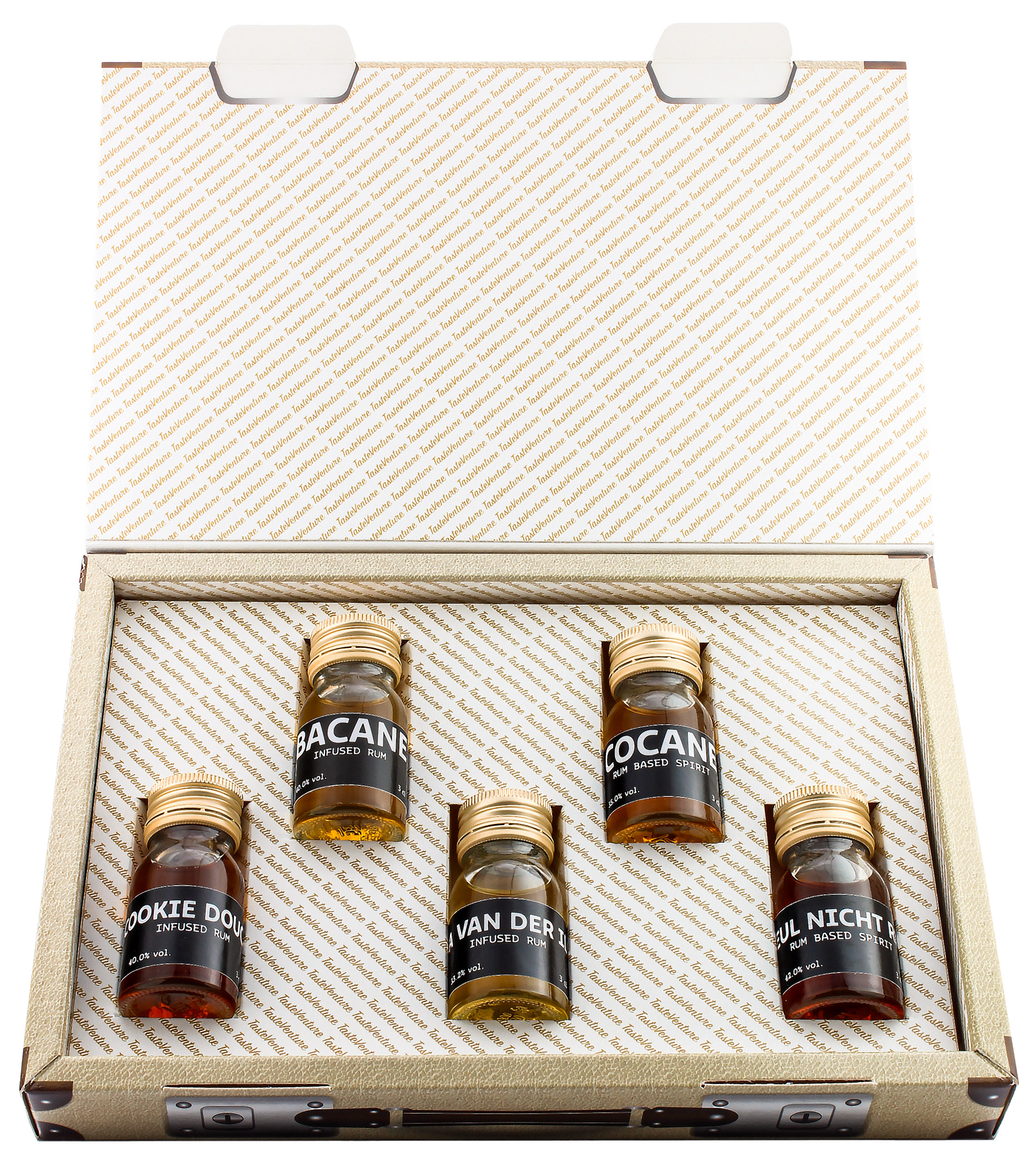 Das World of Rum Tasting Probierset wurde exklusiv von Tasteventure zusammengestellt. Die Edition "Sweet Rum Cruise" überzeugt mit gleich 5 hochwertigen Rum-Abfüllungen, die mit angenehmen karibischen Noten überzeugen. Die Box beinhaltet 5 x 30 ml aufeinander abgestimmte Abfüllungen sowie ein hochwertiges Begleitheft mit allen Informationen zu den Rum-Sorten: