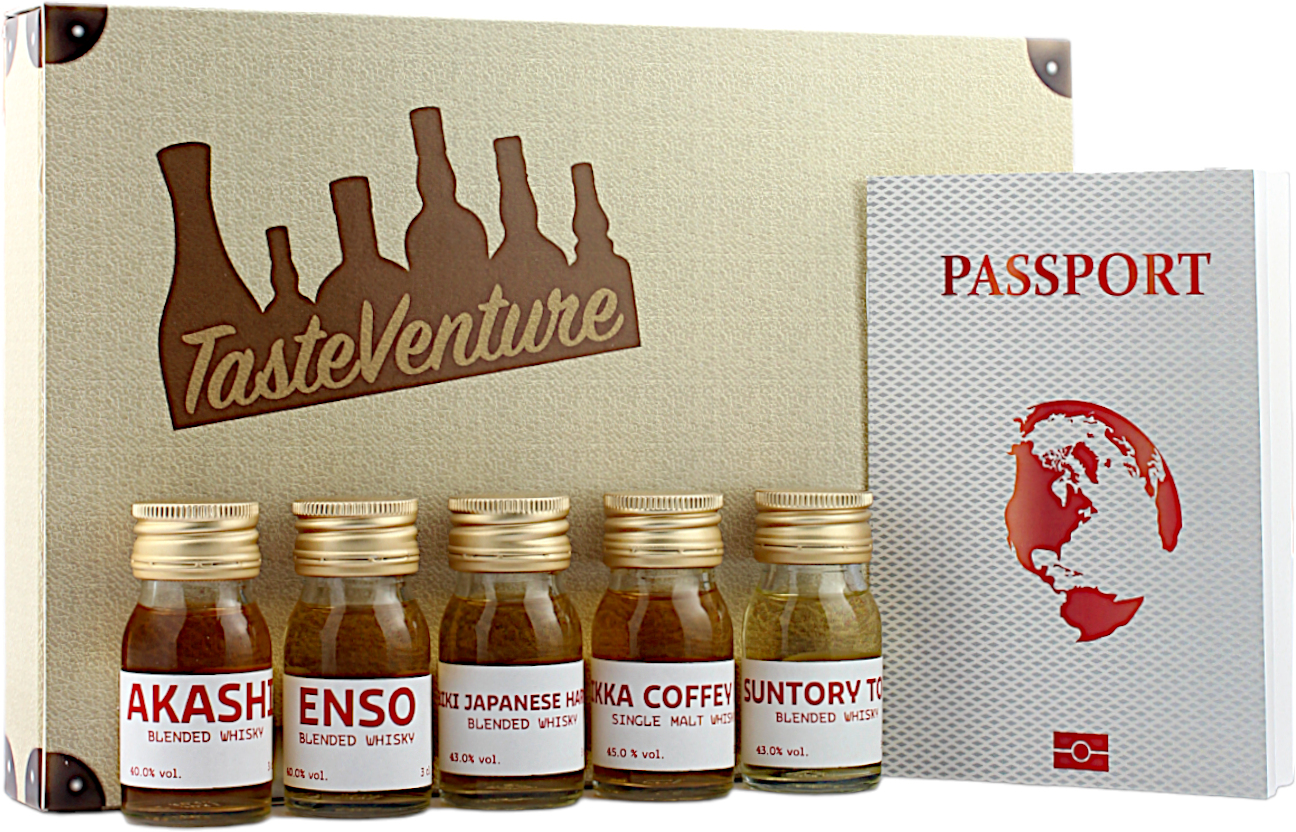 Das World of Whisky Tasting Probierset wurde exklusiv von Tasteventure zusammengestellt. Die Edition "Japanese Whisky Nightlife" überzeugt mit gleich 5 hochwertigen Whisky-Abfüllungen, die zu den besten aus Japan gehören. Die Box beinhaltet 5 x 30 ml aufeinander abgestimmte Abfüllungen sowie ein hochwertiges Begleitheft mit allen Informationen zu den Whisky-Sorten:
